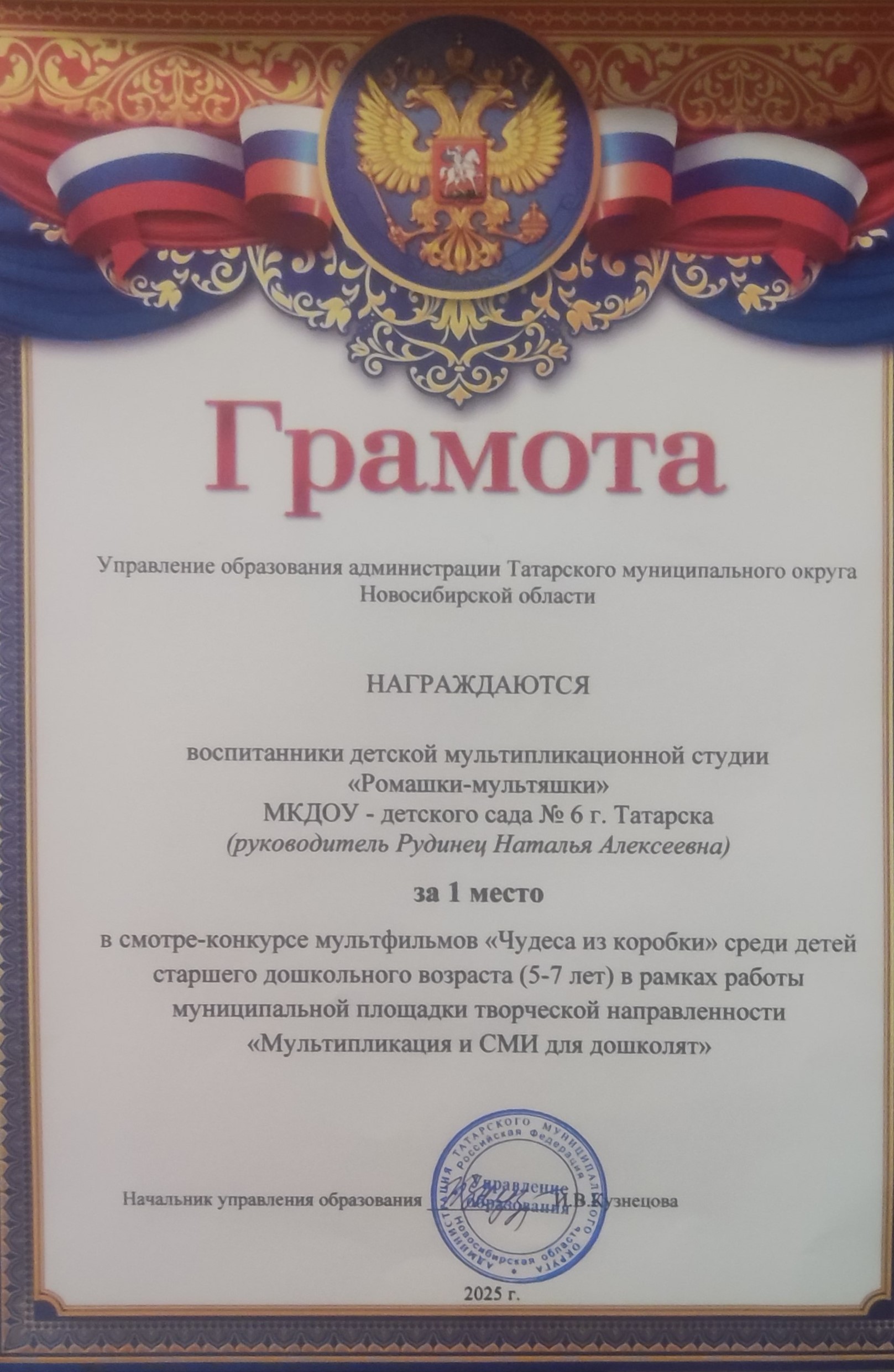 Грамотой награждаются воспитанники детской мультиппликационной студии "Ромашки мультяшки"